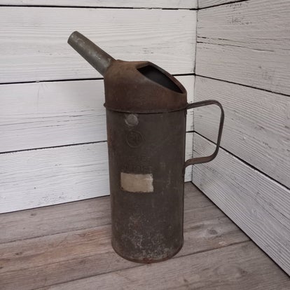 Grote schenkkan voor olie/benzine of andere vloeistoffen. In dit geval terpentine, hij is afkomstig van een voormalige schilder.