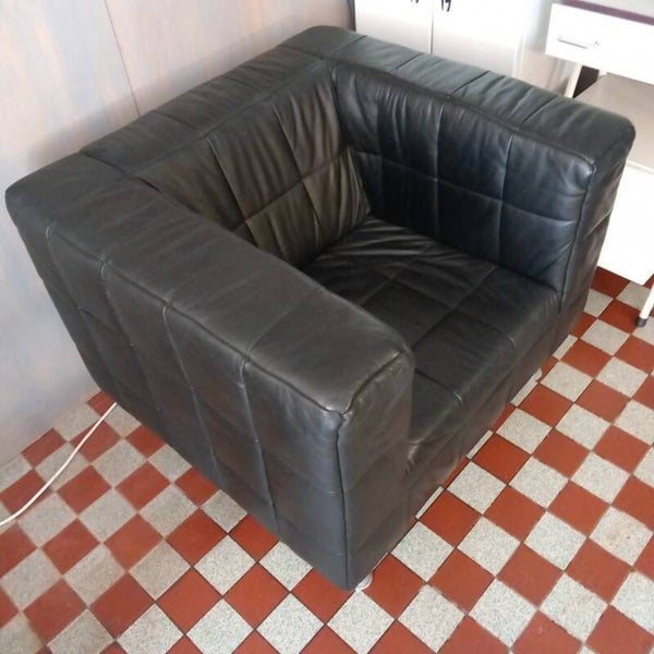 Vintage lederen fauteauill van Josef Hoffman, de "armchair kubus".
