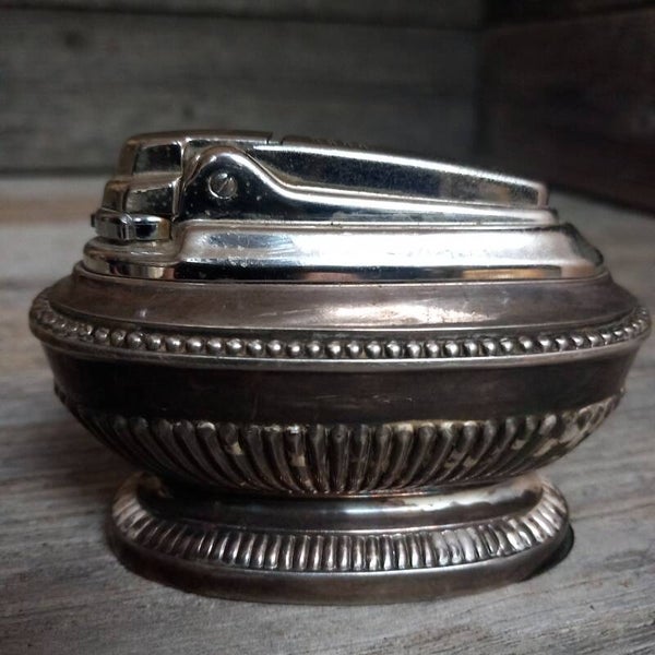 De Ronson aansteker zit in een originele zeer zware verzilverde Ronson houder,deze houder is bijzonder fraai gedecoreerd met parelranden.