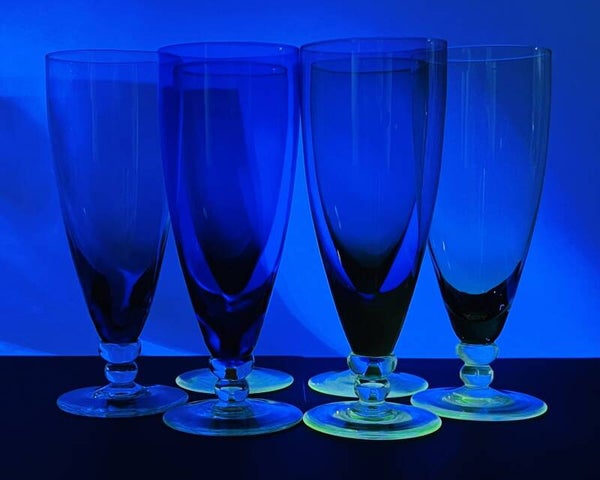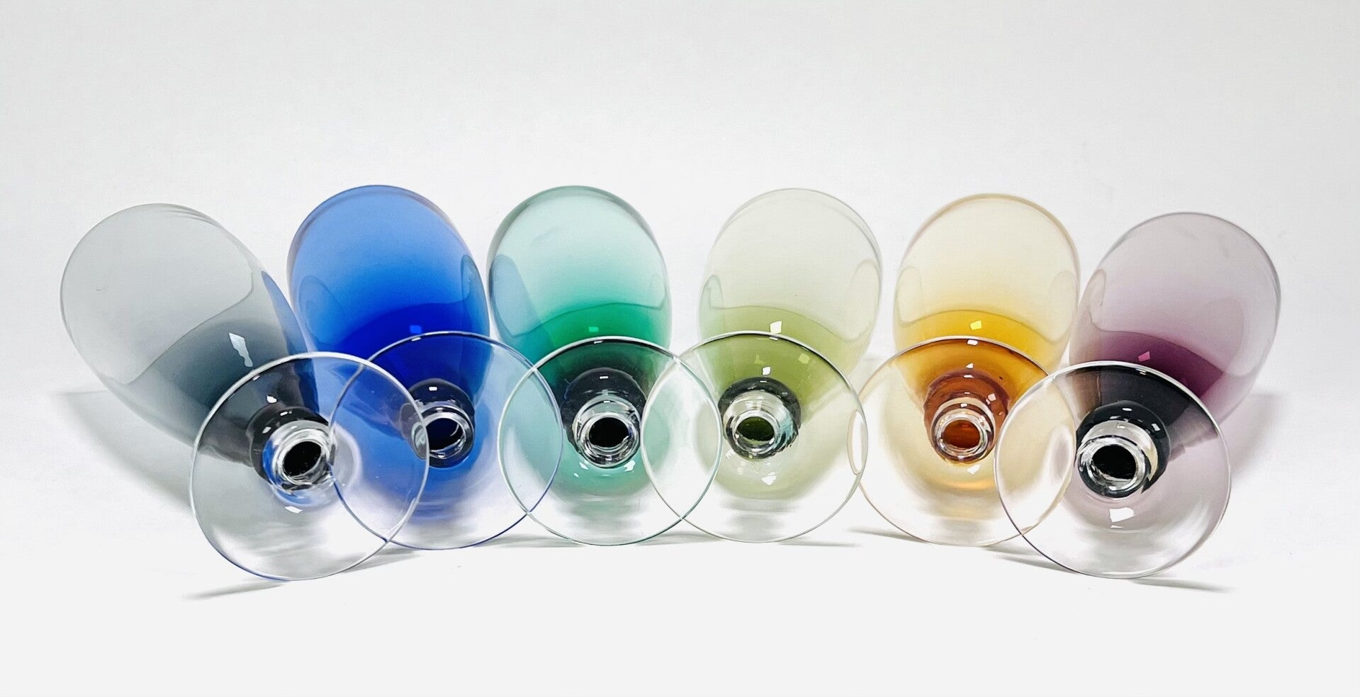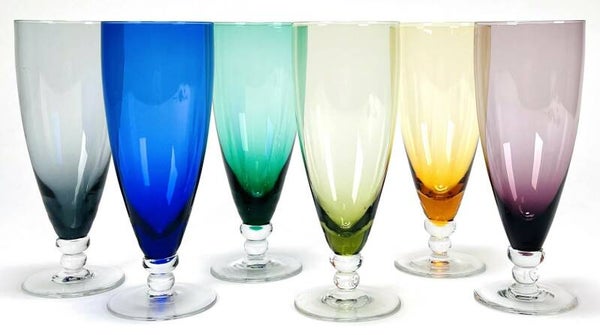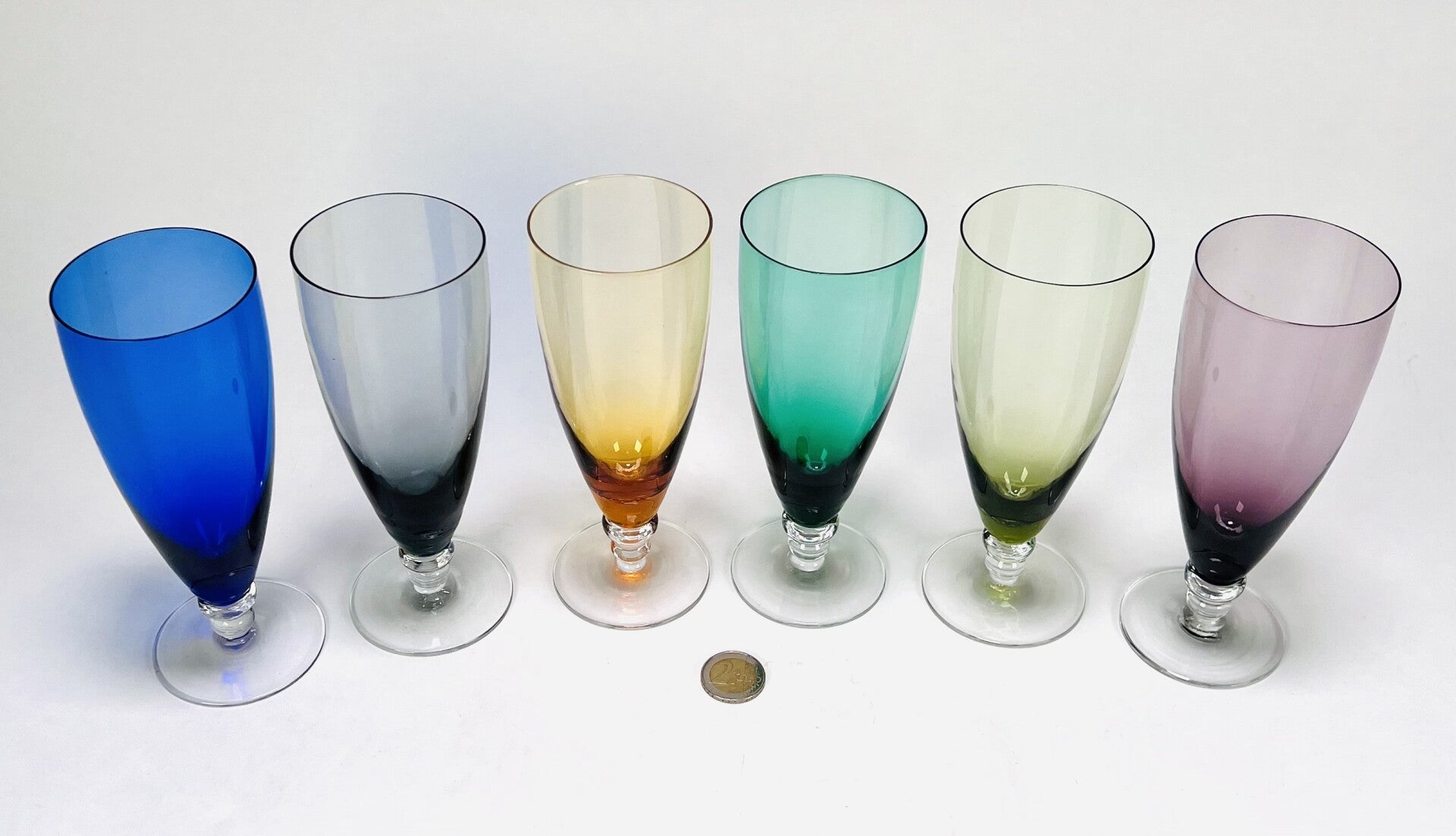 Serie van zes bierglazen, serie Carnaval, Max Verboeket, Kristalunie Maastricht.