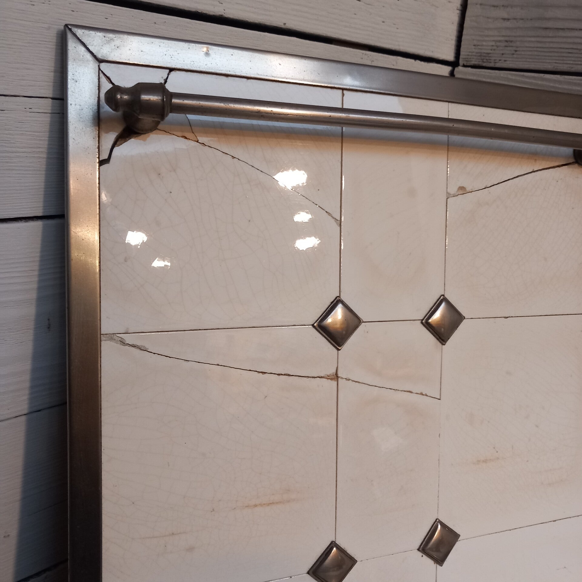 Er zitten weliswaar enkele barsten in de tegels, maar het rek is nog erg stevig. De barsten maken het geheel nog decoratiever.