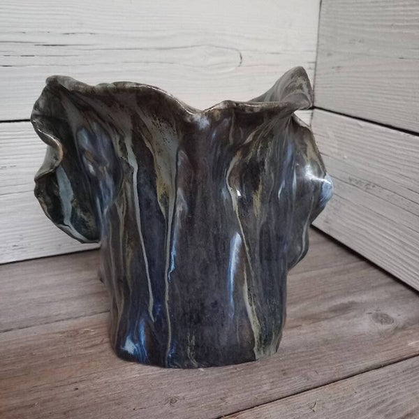 Aan de vormgeving is onmiskenbaar te zien dat dit handwerk is. De vaas is geheel geglazuurd, en heeft een mooie kleurschakering. De vaas is ook gesigneerd, de maker is helaas onbekend.