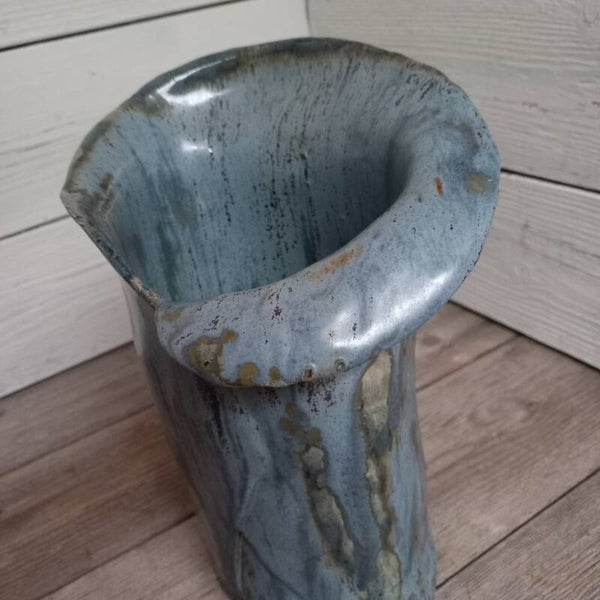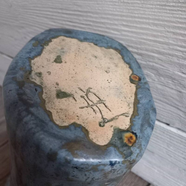 Aan de vormgeving is onmiskenbaar te zien dat dit handwerk is. De vaas is geheel geglazuurd, en heeft een mooie kleurschakering. De vaas is ook gesigneerd, de maker is helaas onbekend.