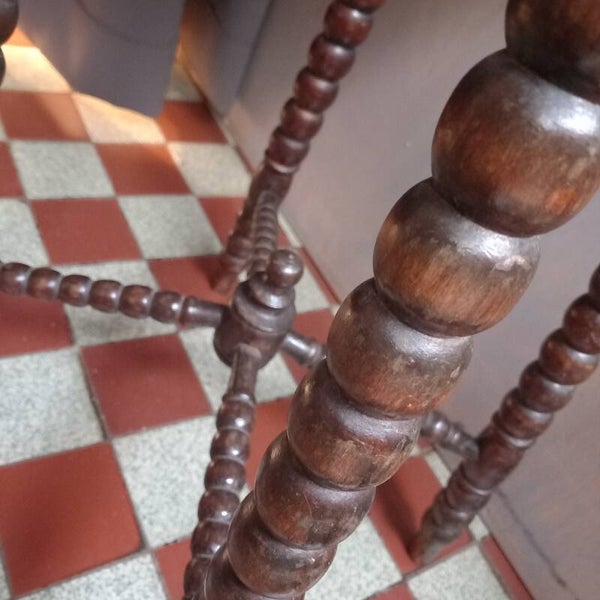 "Bobbin" verwijst in dit geval naar de stijl van het onderstel, dat bestaat uit gedraaide houten poten die aan elkaar verbonden zijn.