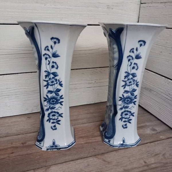 Set van 2 Delfts blauwe vazen, door Petrus Regout, Maastricht.