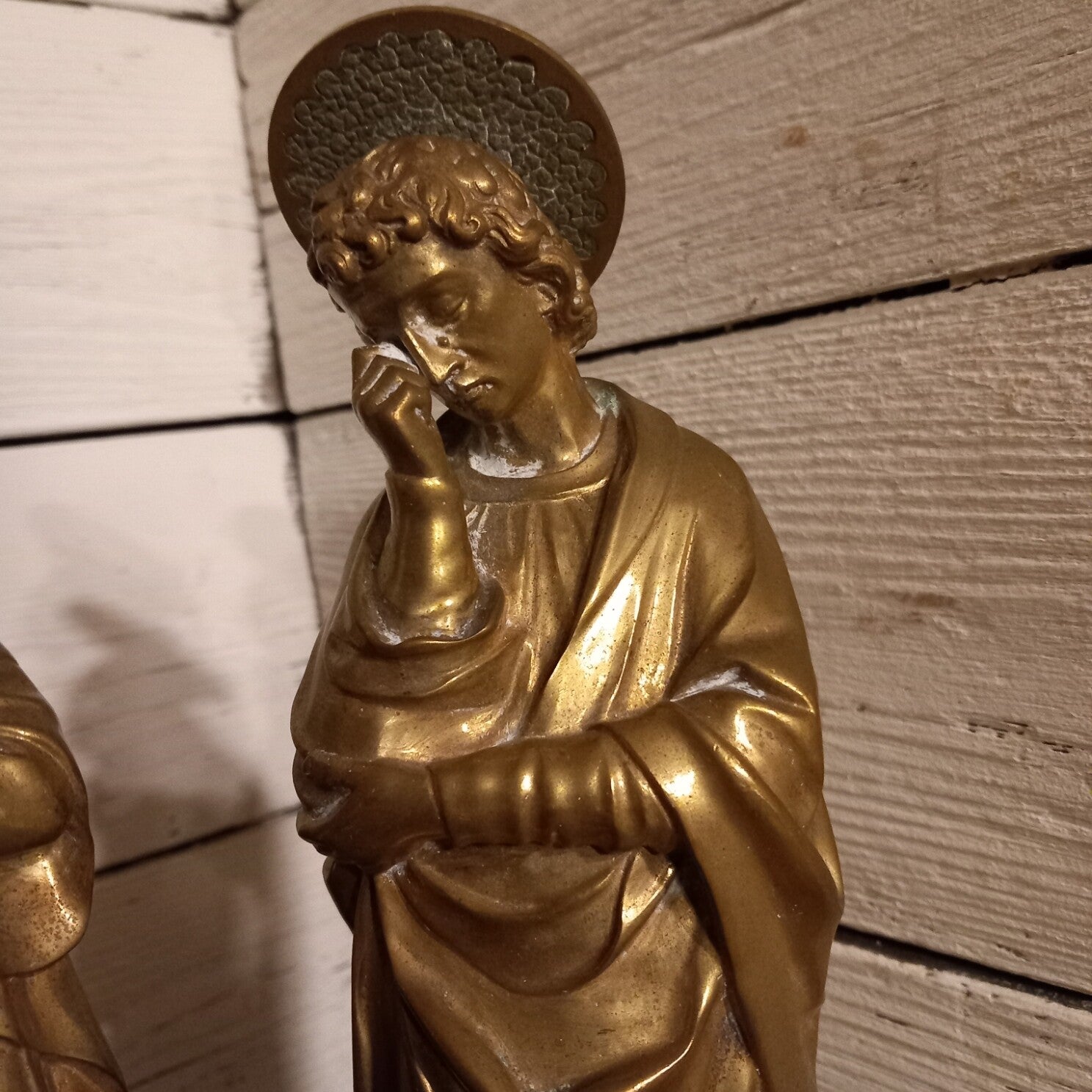 Vergulde bronzen beelden, Maria en Johannes bij de calvarie.
