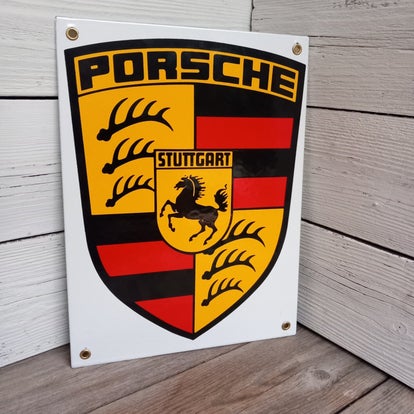 Heb je een Porsche, of wil je een Porsche ? In beide gevallen is dit een prachtig reclame bord om aan je collectie toe te voegen.